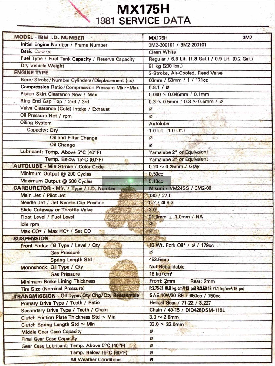 The 1981 Yamaha MX175H Service Data is located: CLICK HERE
